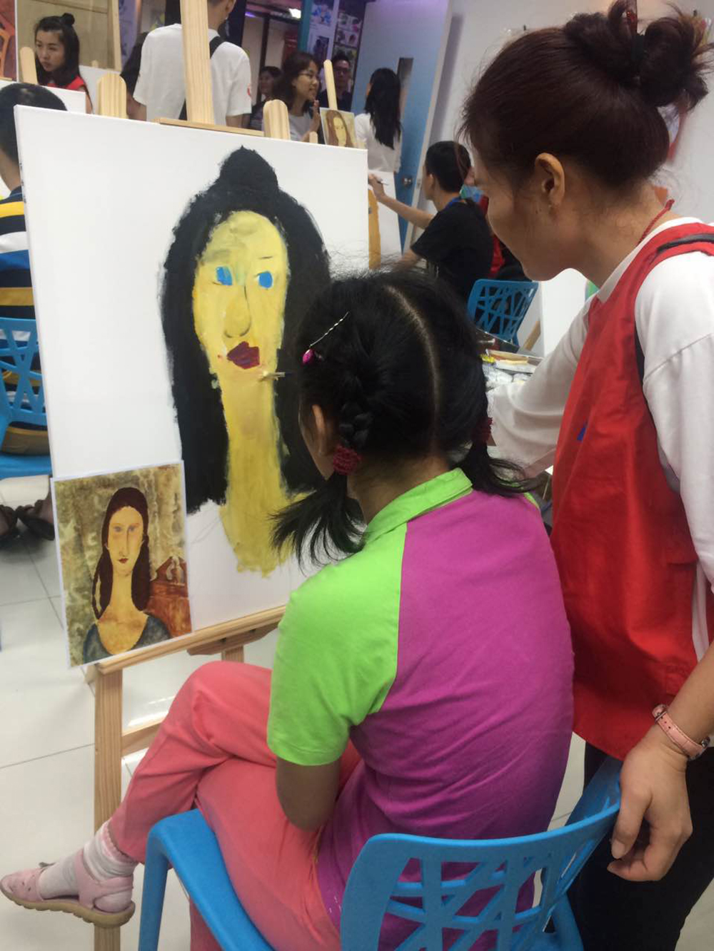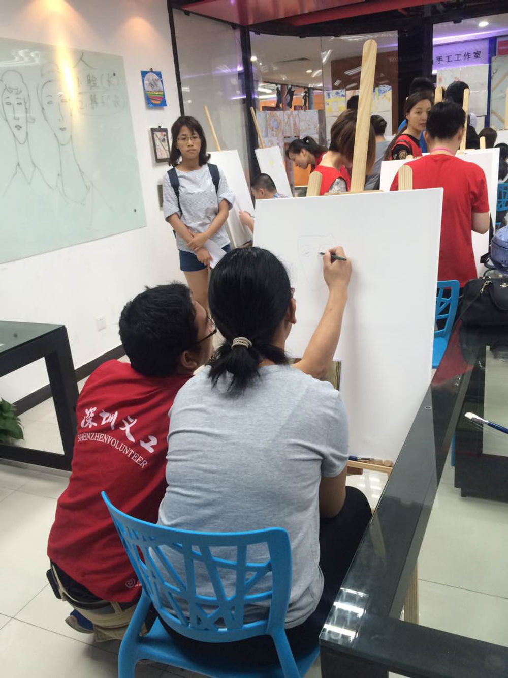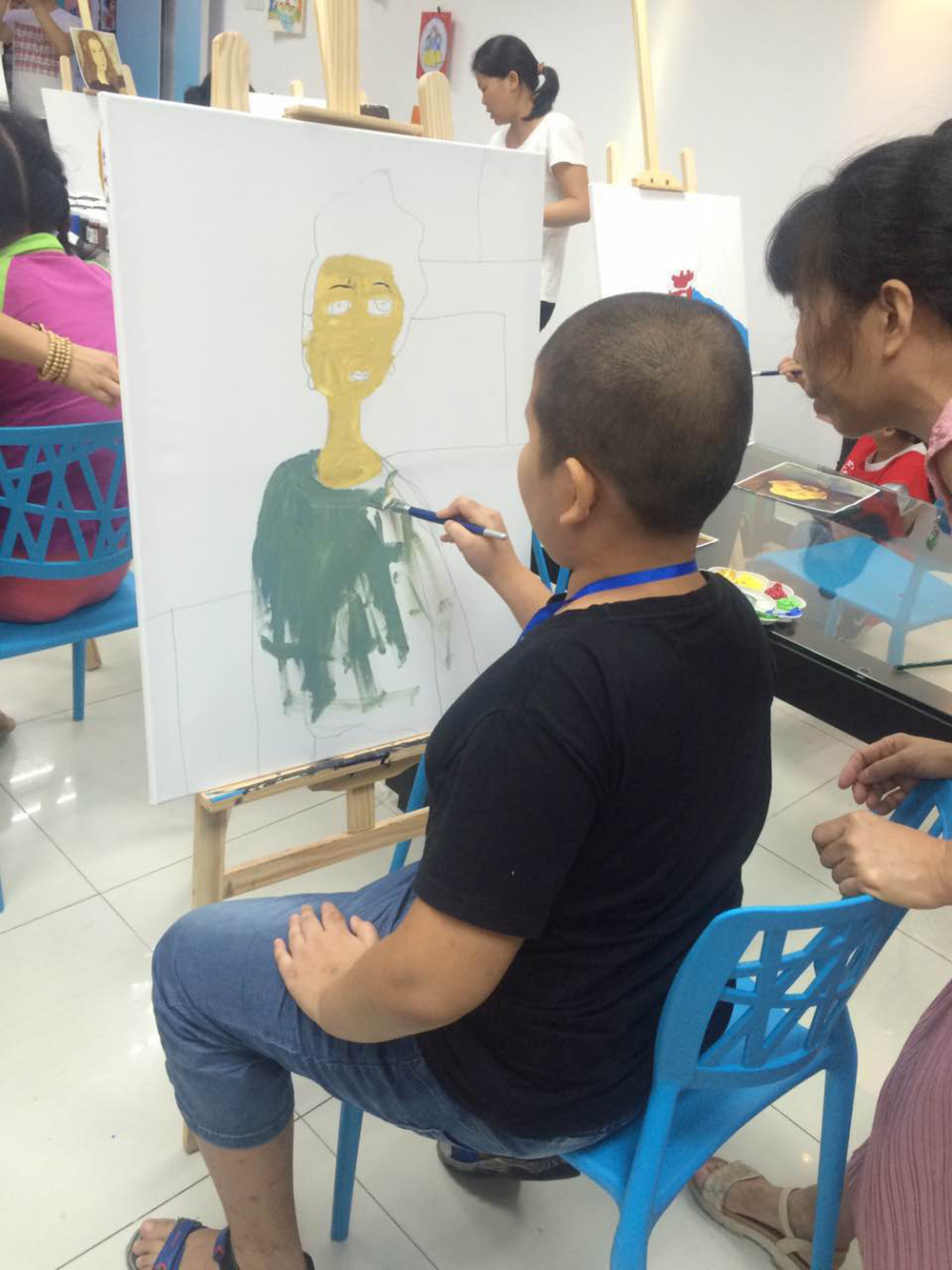 開課當(dāng)天,自閉癥兒童在義工的陪伴下,跟著繪畫老師學(xué)會(huì)畫筆,到慢慢完成繪畫課,他們的注意力很專注,對(duì)色彩有特別的偏愛,整個(gè)繪畫課程簡(jiǎn)單有趣,加上義工的耐心陪伴,讓畫室洋溢著一種溫馨有愛的氣息。